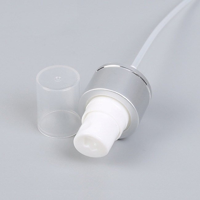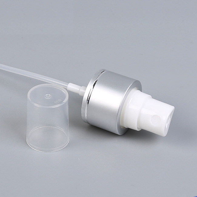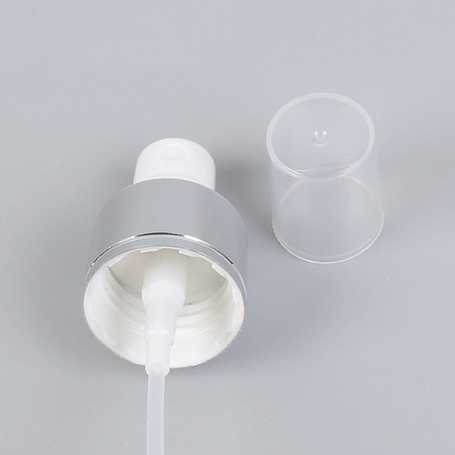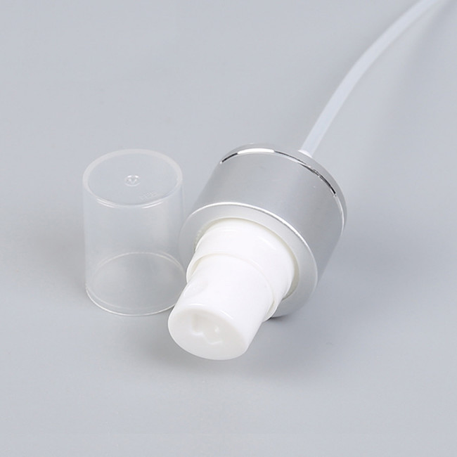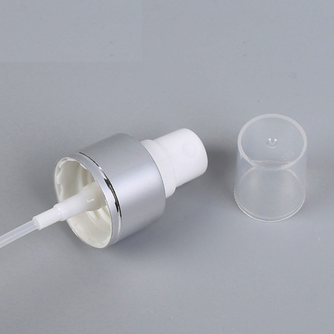 ينشئ بخاخ الرذاذ الدقيق المصنوع من الألومنيوم لونين معدنيين مختلفين على مضخة واحدة ، لون فضي غير لامع مع خط زخرفة فضي لامع.