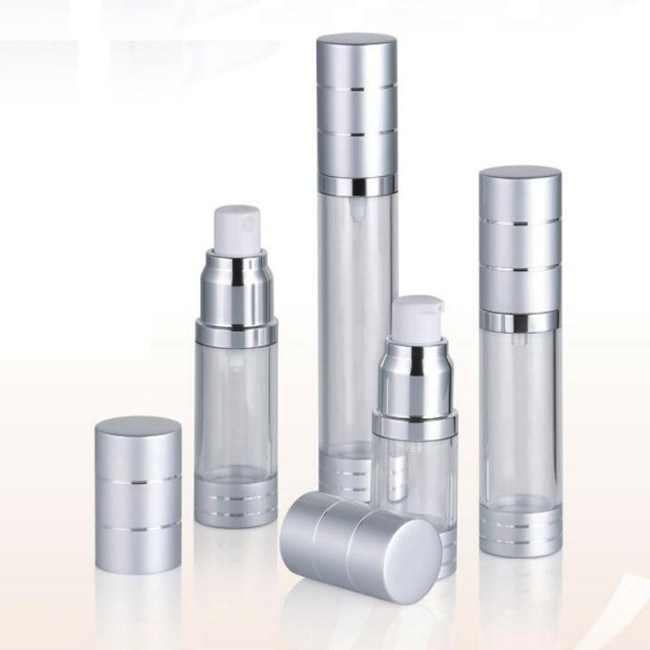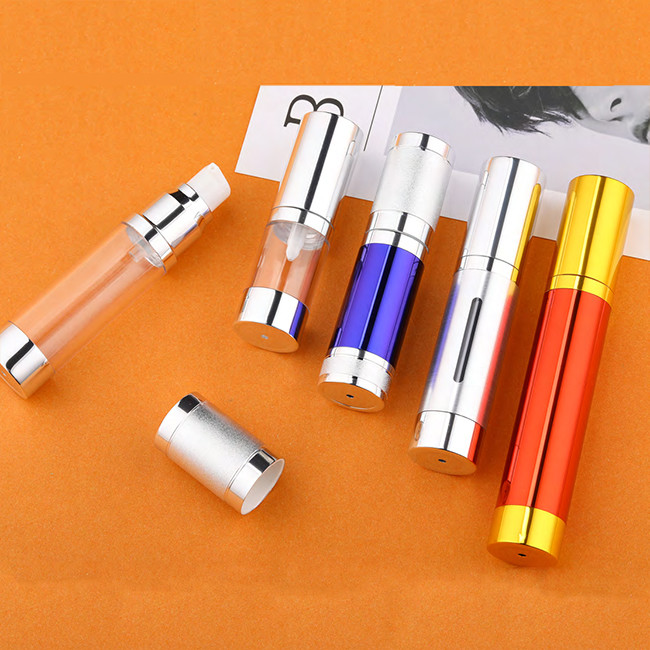 زجاجة المضخة هذه بدون هواء بمضخة وغطاء من الألومنيوم. يمكن توفير تخصيصات مختلفة للأجزاء المصنوعة من الألومنيوم.
