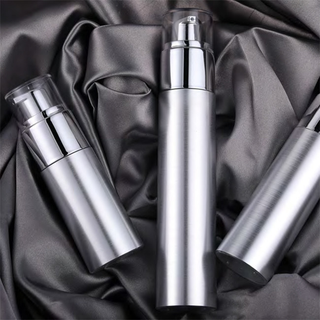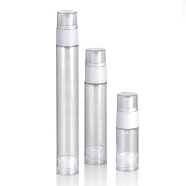 الزجاجة بدون هواء في الحجم المثالي 15 مل، 30 مل و 50 مل في جميع مواد PP. يمكننا تزيين الزجاجة بأكملها عن طريق الطابع الساخن في الفضة والذهب.