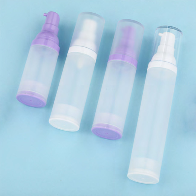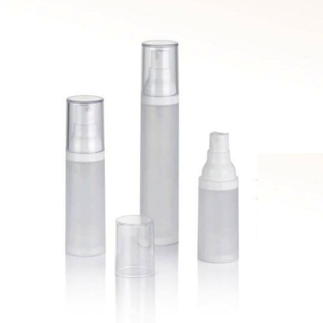 الزجاجة بدون هواء في الحجم المثالي 15 مل، 30 مل و 50 مل في جميع مواد PP. يمكننا تزيين الزجاجة بأكملها عن طريق الطابع الساخن في الفضة والذهب.