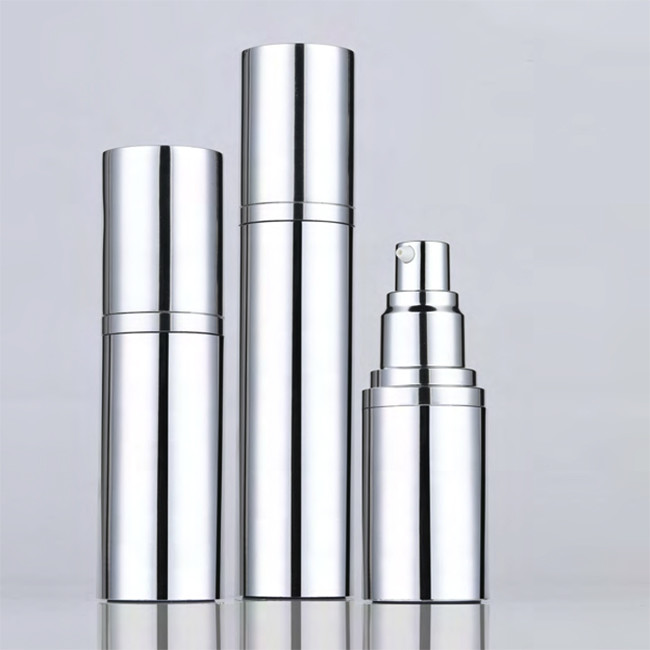هذه الزجاجة التي تعمل بدون هواء مزودة بزجاجة AS ولكن بغطاء ألومنيوم ومضخة ألومنيوم. تبدو راقية. يمكن تغطية الزجاجة بالختم الساخن بنفس لون المضخة والغطاء مثل الصورة.